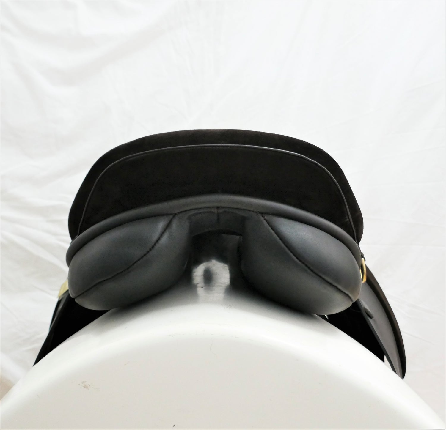 The saddle pictured is a wide seat VSD model on the Highland & Cob tree made to measure for a traditional cob.